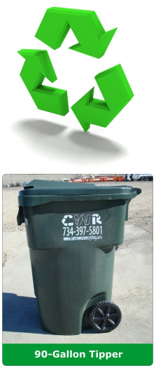 CWR's single-stream recycling program will save you money by decreasing the amount of waste send to the landfill. We will make it easy to recycling those everyday items that fill up your waste stream. Many businesses choose our 90-gallon tipper. CWR's tipper is perfect for offices that don't produce a lot of waste, but still need a clean, sturdy solution for their recyclables.
